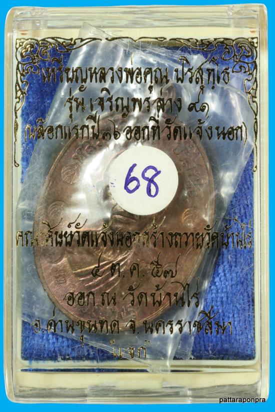 เหรียญหลวงพ่อคูณ รุ่นเจริญพรล่างบล็อกเเรก ปี 2557 เนื้อทองแดงมันปู รวมโค๊ต หมายเลข 68