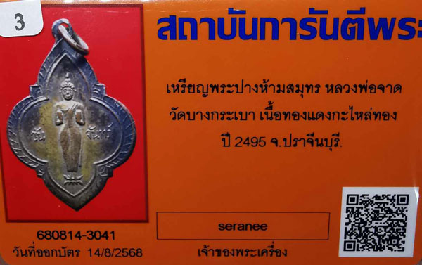 (วันจันทร์)เหรียญพระปางห้ามสมุทร หลวงพ่อจาด วัดบางกระเบา เนื้อทองแดงกะไหล่ทอง ห่วงเดิม ปี2495 จ.ปราจีนบุรี + บัตรG-pra สภาพเดิมค่ะ |
