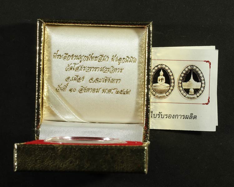 เหรียญพระพุทธโสธร ปี 2549 รูปไข่ลายดอกสาละ งานผูกพัทธสีมา ฝังลูกนิมิต พระอุโบสถหลังใหม่ "เนื้อเงินนอก 99% ขัดเงาพ่นทราย" สวย คู่มือ พร้อมกล่องเดิมๆ
