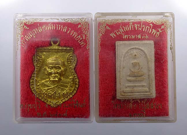 2องค์ สายใต้ เหรียญหล่อเสมา หลวงพ่อยิด วัดหนองจอก + พระสมเด็จปรกโพธิ์ หลวงพ่อจำเนียร วัดถ้ำเสือ |
