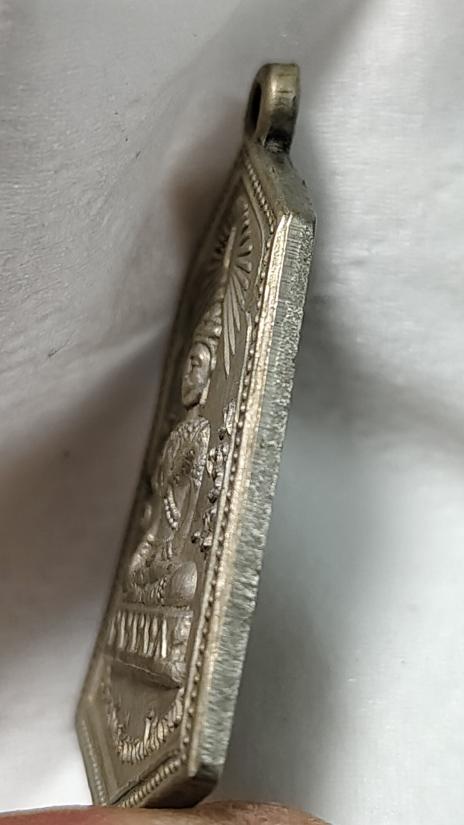 เหรียญรุ่นแรก " พระเจ้าศรีธรรมโศกราช " จ.นครศรีธรรมราช ออกวัดหน้าพระธาตุ เนื้ออัลปาก้า ปี 2506 |