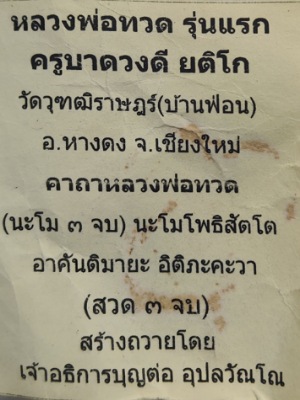 พระผง หลวงพ่อทวด ครูบาดวงดี ยติโก วัดบ้านฟ่อน รุ่นแรก เจ้าอธิการบุญต่อ สร้างถวาย |