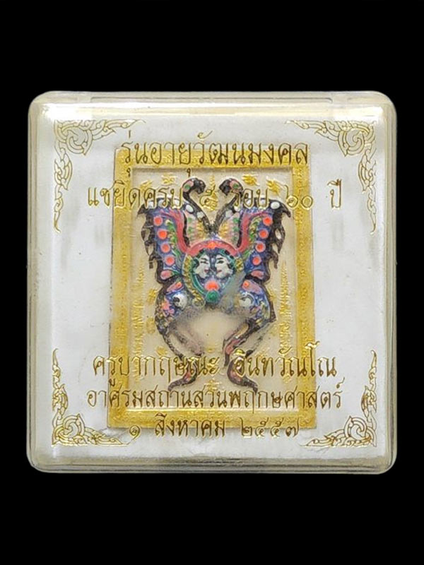 เทพจำแลงภมร เนื้อผง บรรจุตะกรุด รุ่น อายุวัฒนมงคล แซยิด 5 รอ บ 60 ปี ครูบากฤษณะ อาศรมสถานสวยพุทธศาสตร์ ปี 2557 เนื้อผงว่านตะกรุดเงินคู่เพ้นสี