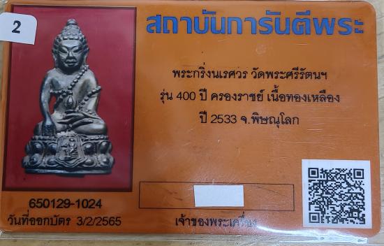 พระกริ่งนเรศวร 400 ปี วัดพระศรีรัตนมหาธาตุ จ.พิษณุโลก ปี 2533 เลี่ยมเงินพร้อมใช้ มีบัตรรับรอง |