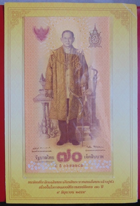 ธนบัตรที่ระลึกทรงครองสิริราชย์สมบัติครบ 60 ปี.และทรงครองสิริราชย์สมบัติครบ 70 ปี.อย่างละ 1 ฉบับ.สภาพไม่ได้ใช้ พร้อมแผ่นพับเดิม แต่แผ่นพับครองราชย์ 70 ปี.มีรอยพับตามรูปครับ.