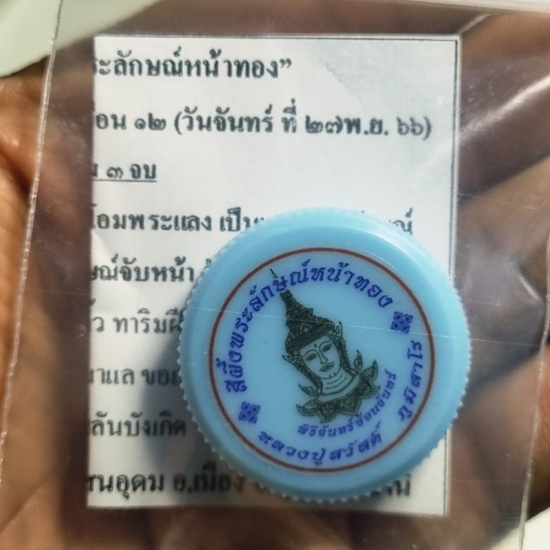 สีผึ้งพระลักษณ์หน้าทอง พิธีจันทร์ซ้อนจันทร์ หลวงปู่สวัสดิ์ ภูมิสาโร วัดป่าแสนอุดม อ.เมือง จ.อุบลราชธานี |