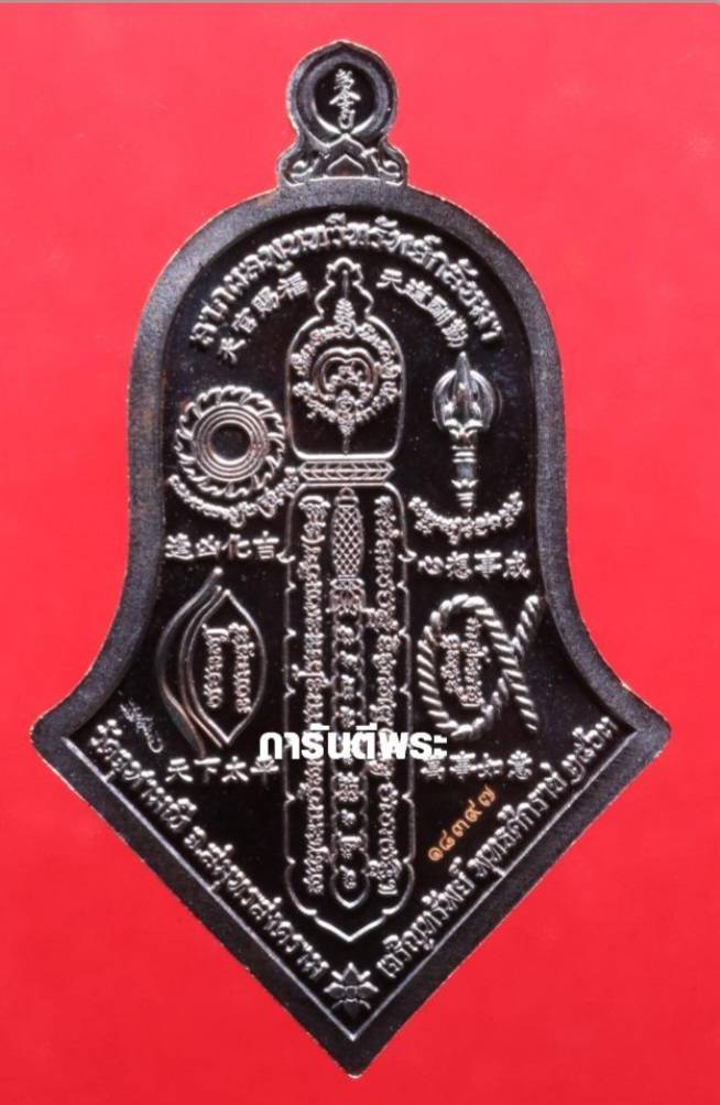 : ท้าวเวสสุวรรณ รุ่นเจริญทรัพย์ ๖๓ พิมพ์จำปีใหญ่ เนื้อทองแดงรมดำ หลวงพ่ออิฏฐ์ วัดจุฬามณี จ.สมุทรสคราม ด้านหลังเป็น เทพศาตราวุธทั้งห้า ท้าวเวสสุวรรณ