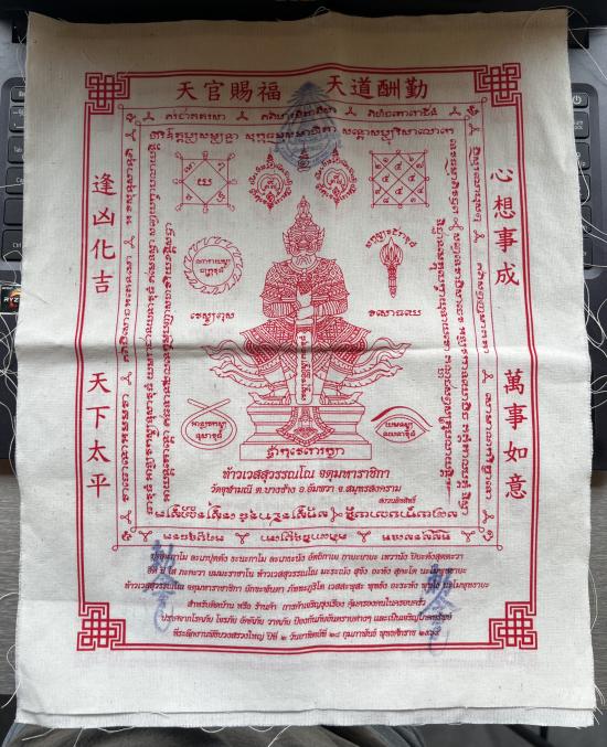 ผ้ายันต์ท้าวเวสสุวรรณโณ วัดจุฬามณี สมุทรสงคราม ปี64 สวยเดิม2ผืน