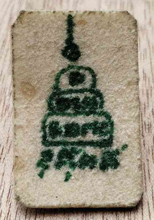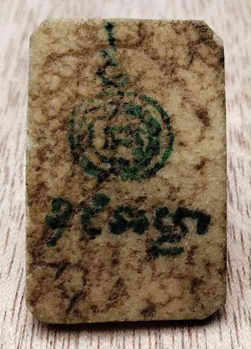 แผ่นตะกรุด หนังกลองเพล ปั้มตรายันต์ 2 ด้าน ไม่ทราบที่ครับ ขนาดประมาณ 2x3 ซม. |