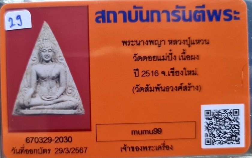 @## พระนางพญา.. ลป.แหวน วัดดอยแม่ปั๋ง จ.เชียงใหม่ (พิธีปลุกเสกใหญ่ใหญ่ วัดสัมพันธวงศ์ กทม.จัดสร้าง ) ปี2516 เนื้อผง พร้อมบัตรรับรอง สภาพสวยมาก รับประกันความแท้ตลอดชีพ พิธีปลุกเสกในวาระแรก ปี 2516 -วัต |