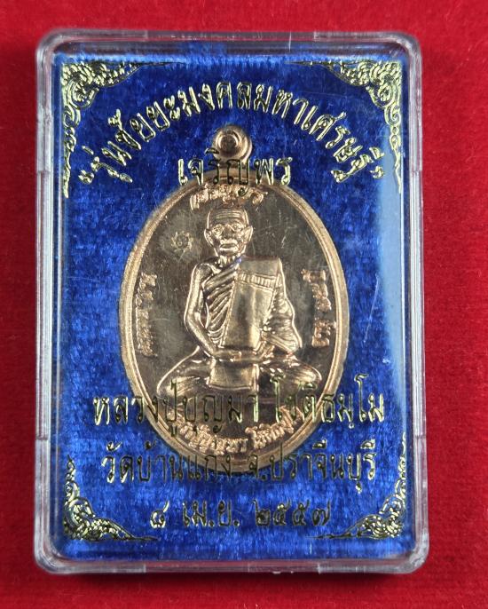 เหรียญเจริญพร รุ่นชัยยะมงคลมหาเศรษฐี หลวงปู่บุญมา วัดบ้านแก่ง เนื้อทองแดง |