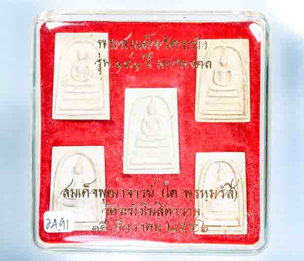 กล่องเป็นกล่องเดิมชุดกรรมการเล็ก ซึ่งประกอกด้วย พิมพ์ใหญ่เกศทะลุซุ้ม(ประทาน) พิมพ์ใหญ่(ประทาน) พิมพ์เส้นด้าย พิมพ์เกศบัวตูม และพิมพ์ฐานแซม แต่จะเป็นเนื้อแตกลายงา แต่ในชุดนี้ ได้เอาพระชุดแช่น้ำมนต์มาใส่ในกล่อง กรรมการเล็ก เอาไปแจกของขวัญปีใหม่ ราคาเบาๆ