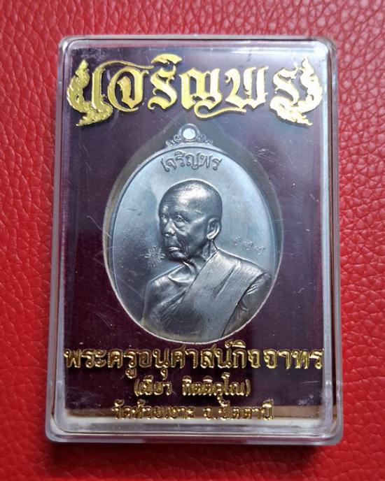 เหรียญเจริญพร (บน) พ่อท่านเขียว วัดห้วยเงาะ ปี 58 เนื้อตะกั่ว เลขสวย เลขตอง 777 กล่องเดิม ไม่ผ่านใช้