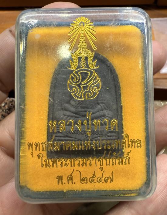 พระหลวงปู่ทวดหลังติดแผ่นโลหะภปร.และโค๊ดหมาเลข เนื้อดำ วัดพระ ศรีรตนศาสดาราม ปีพ.ศ.2547 พุทธสมาคมแห่งประเทศไทย พรอมกล่อง |