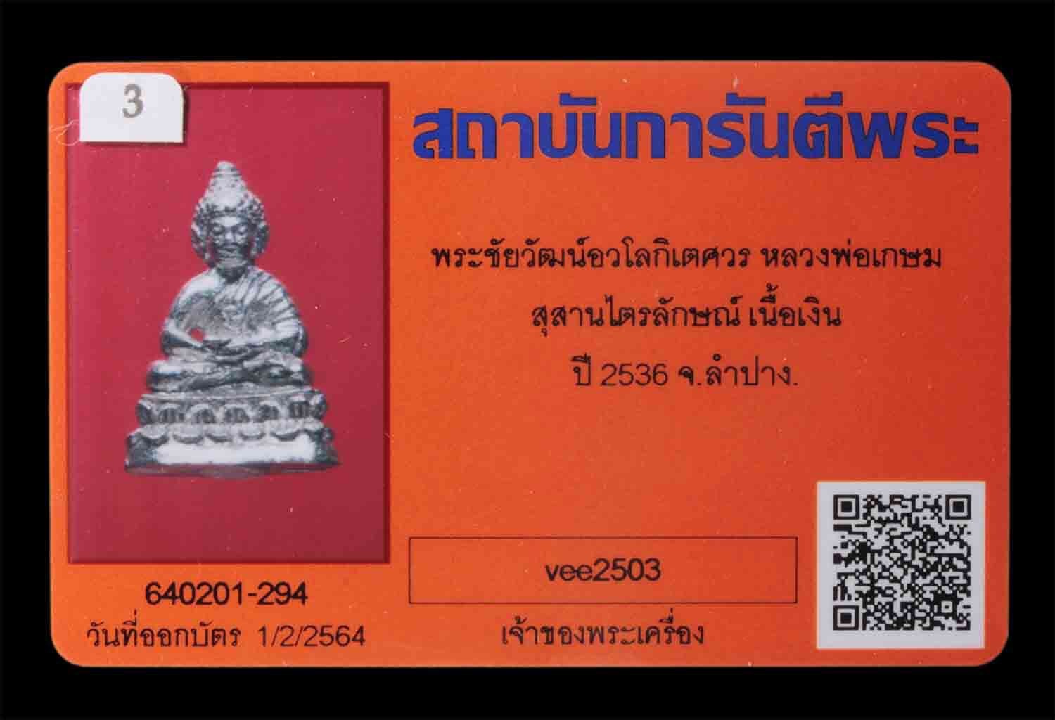 พระชัยวัฒน์อวโลกิเตศวร หลวงพ่อเกษม เนื้อเงิน ปี 36 เคาะแรกคะ |