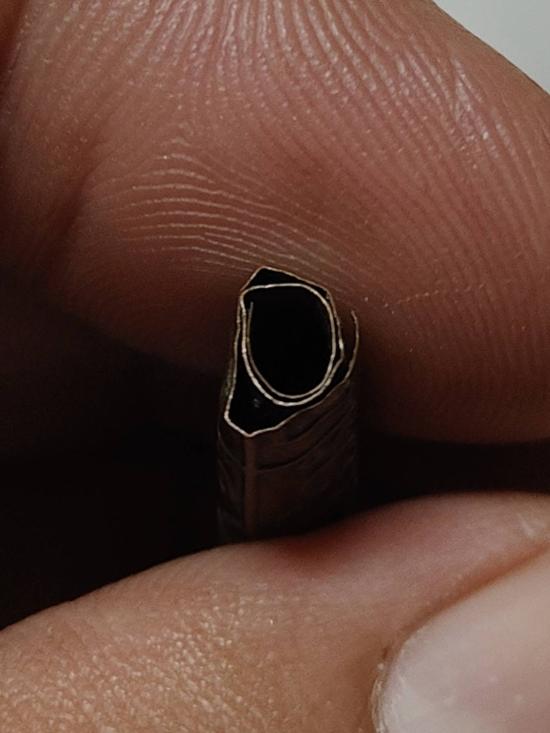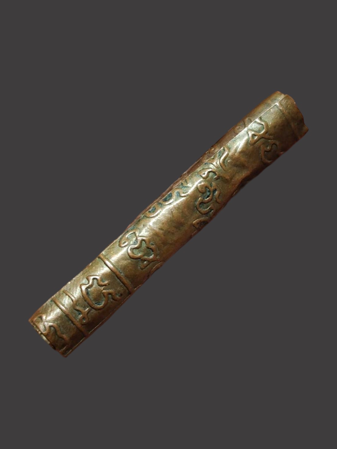A627.**วัดใจ**ตะกรุดทองแดง ไม่ทราบที่ เก่าๆ ยันต์เด้งๆ เคาะเดียวเเดง |