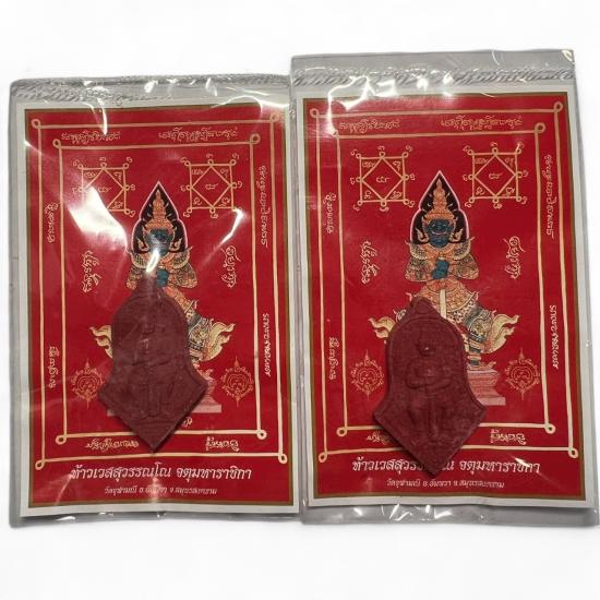2 องค์!! ท้าวเวสสุวรรณ วัดจุฬามณี รุ่นรับขวัญศิษย์ พิมพ์ใหญ่ 4 เซน เนื้อผงซูจาแดง ปี2562 ซองเดิมพร้อมใบคาถา |