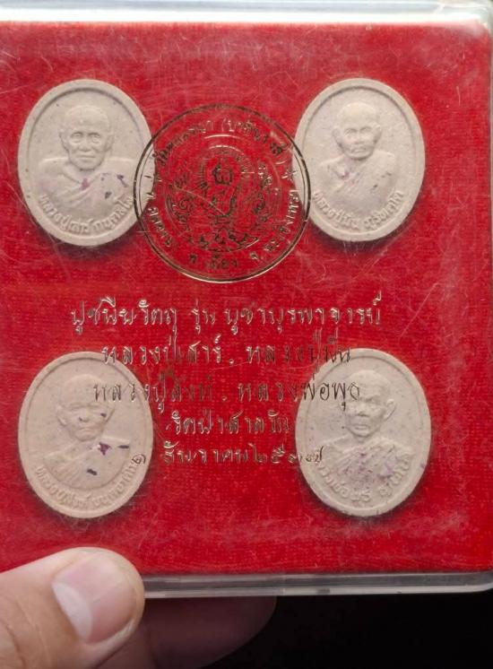 ชุดบูรพาจารย์ วัดป่าชินรังสี (หลวงปูมั่น-หลวงปู่เสาร์-หลวงปู่สิงห์-หลวงพ่อพุธ) ปี 37 ฝังพลอย เสกทุกองค์ |