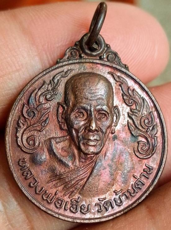 เหรียญหลวงพ่อเอีย วัดบ้านด่าน ที่ระลึกงานยกช่อฟ้า วัดมะกอกแก้ว จ.ปราจีนบุรี ปี 2519 |