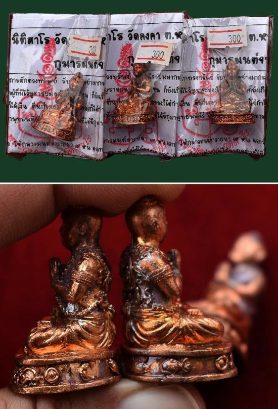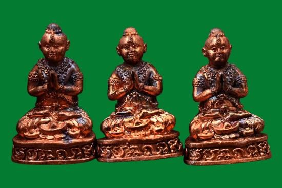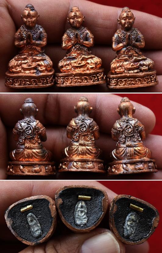 ชุด 3 องค์...กุมารมนต์จนไม่เป็น เนื้อทองแดง ใต้ฐานอุดผงมวลสารฝังของ ปี 2555 หลวงปู่สมชาย วัดคงคา จ.กาญจนบุรี พร้อมซองใบฝอยเดิมจากวัด |