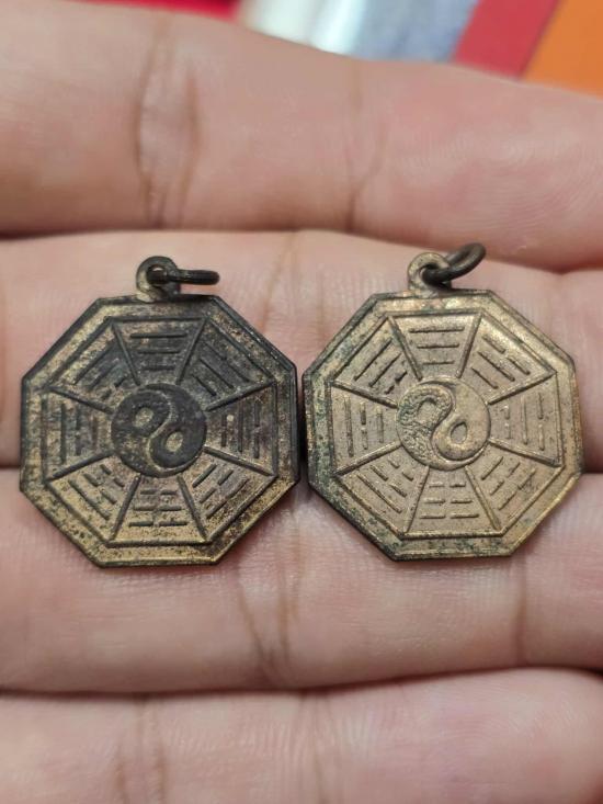 เคาะเดียวแดง เหรียญจีนหยิน-หยาง ด้านหลังหนังสือจีน พิมพ์แปดเหลี่ยม 2เหรียญคับ |