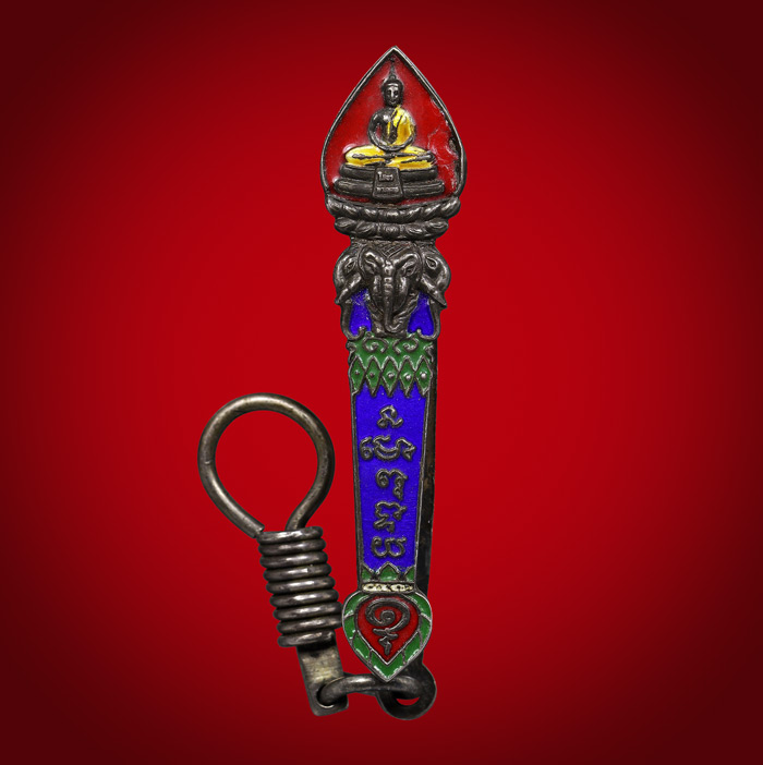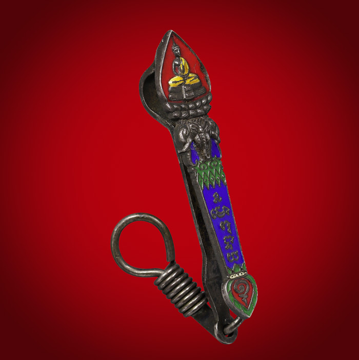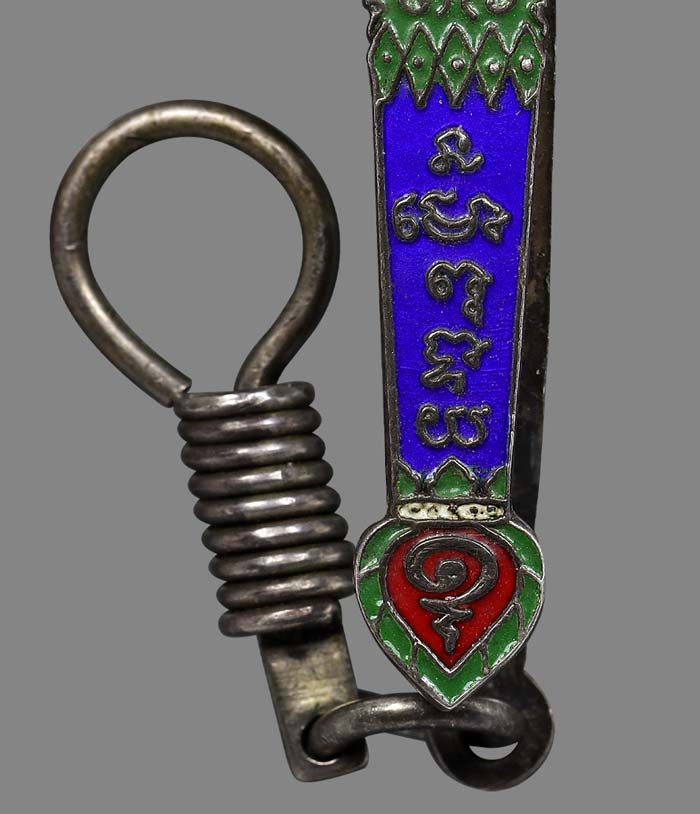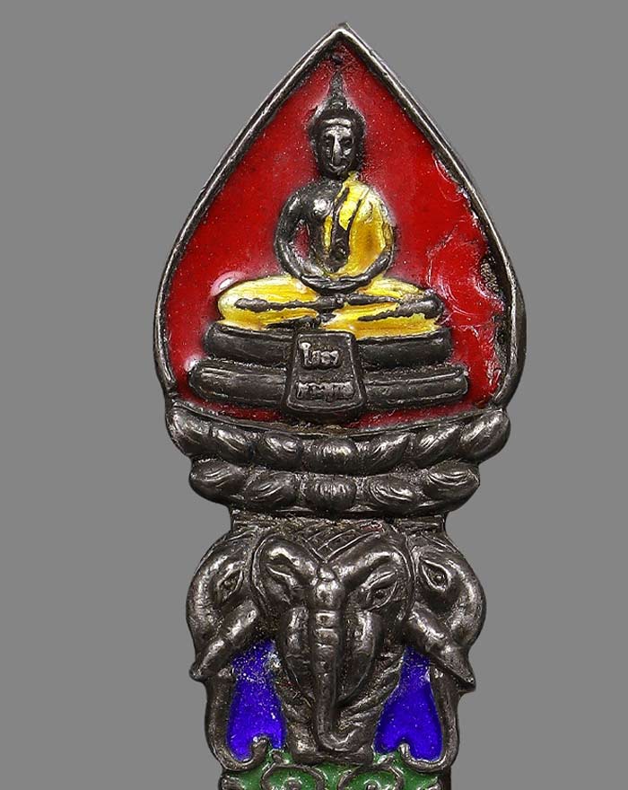 แหนบ เนื้อเงิน 92.5 ลงยา หลวงพ่อโสธร (ไม่ทราบปีที่สร้าง) ขนาดกว้าง 1cm ยาว 4.6 cm |