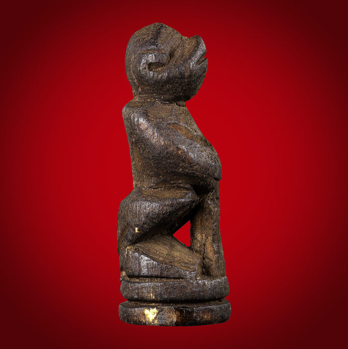 หนุมาน ลิง จับหลัก(ไม่ทราบที่สร้าง)เนื้อไม้แกะ เก่าพอมีอายุ ขนาดฐาน 1 cm สูง 2.5 cm |