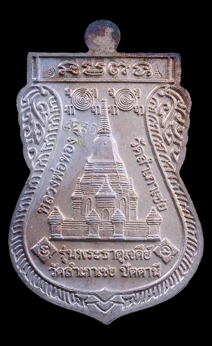 เหรียญหลวงปู่ทวด อาจารย์ทอง วัดสำเภาเชย พิมพ์พุทธซ้อน รุ่นพระธาตุเจดีย์ เนื้อเงินลงยาลายธงชาติ ปี 2549 จ.ปัตตานี |