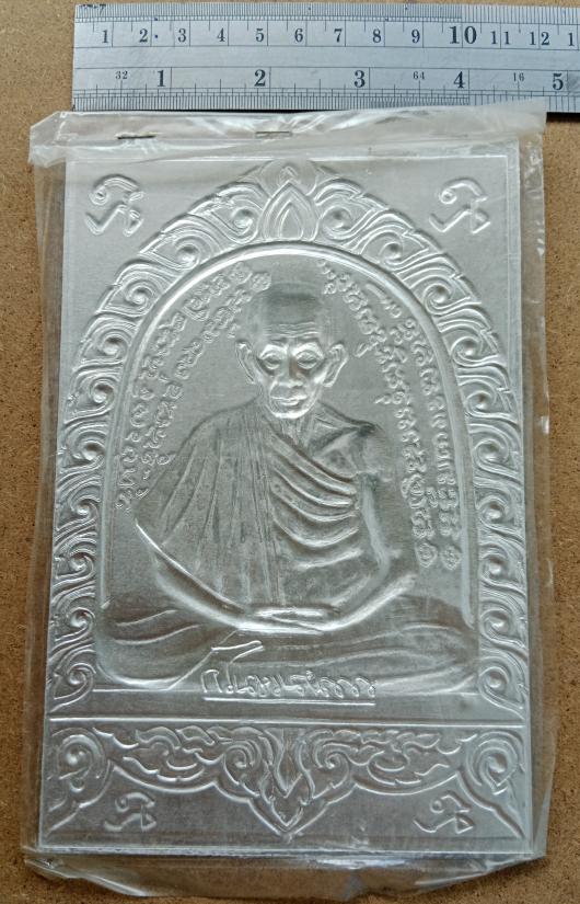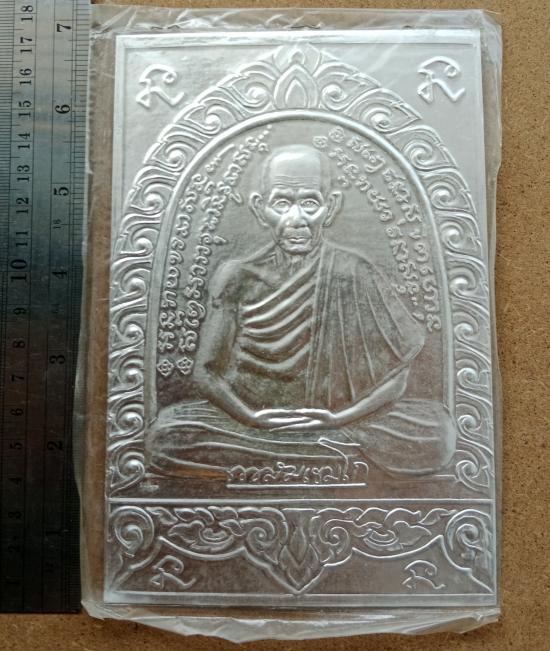 แผ่นปั๊ม หลวงพ่อเกษม ขนาด 11 X 17 ซม เนื้อแป๊ะตั๋งผสมเงิน ตอกโค้ด อยู่ในซองเดิมๆ ตามรูปครับ