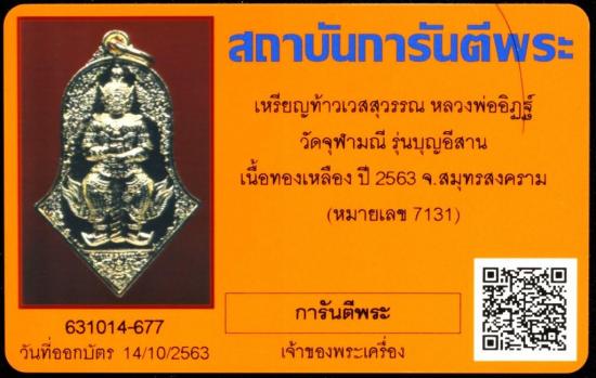 วัดใจ เคาะเดียว เหรียญท้าวเวสสุวรรณ หลวงพ่ออิฏฐ์ วัดจุฬามณี พิมพ์จำปีใหญ่ รุ่นบุญอีสาน เนื้อทองเหลือง ปี 2563 จ.สมุทรสงคราม กล่องเดิม พร้อมบัตรรับรองการันตีพระ |