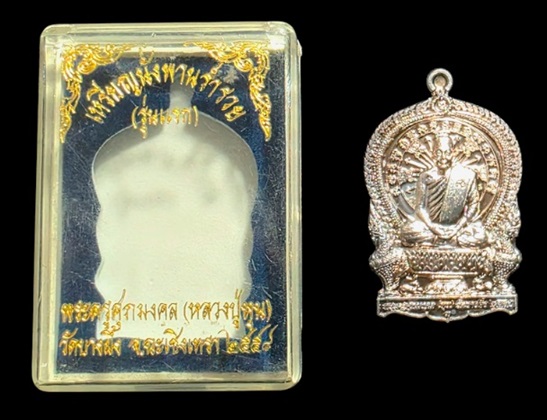 เหรียญนั่่งพานร่ำรวยรุ่นแรก หลวงปู่หุน วัดบางผึ้ง ปี2554 เนื้อเงิน หมายเลข207 พร้อมกล่องเดิม รีบเก็
