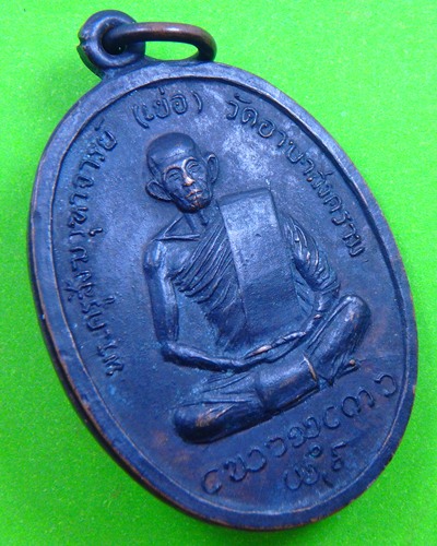 เหรียญรูปเหมือนนั่งเต็มองค์ พระครูสังฆวุฑาจารย์ (เย่อ) วัดอาษาสงคราม เนื้อทองแดงรมดำ |