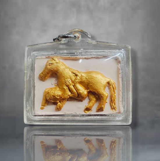 ม้าเสพนาง เนื้อผงพุทธคุณ ปัดทอง ครูบาคำเป็ง สำนักสงฆ์มะค่างาม จังหวัดกำแพงเพชร พร้อมเลี่ยมกันน้ำ