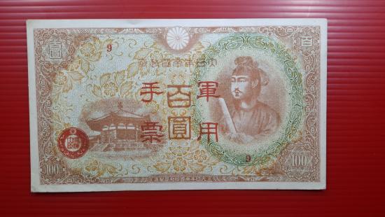 ธนบัตรทหารญี่ปุ่นสมัยสงครามโลกครั้งที่ 2 ราคา 100 เยน |