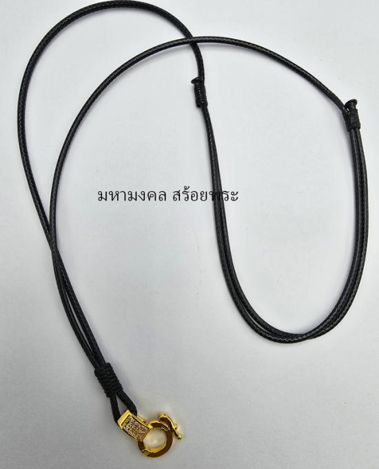 สร้อยหนังถัก ขนาด 2 มิล เชือกปรับได้ พร้อมรังดุมฝังพลอย ตามรูปคับ ห้อยพระติดคอได้เลย |