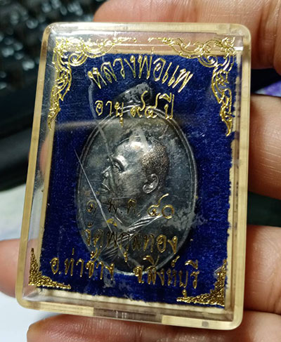 เหรียญหลวงพ่อแพ อายุ 94 ปี เนื้อเงิน ปี 2540 สวยเดิมๆ พร้อมกล่องเดิม ตอกเลข112 |
