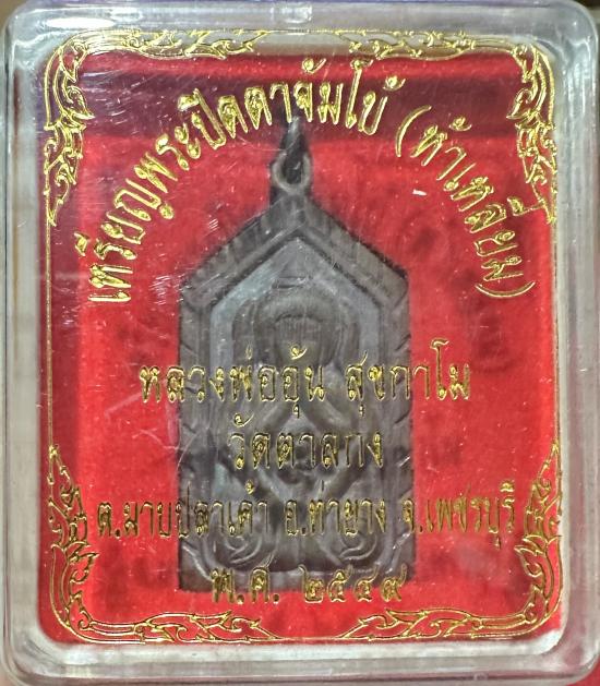 พระปิดตาจัมโบ้ พิมพ์ห้าเหลี่ยม ปี2549 หลวงพ่ออุ้น วัดตาลกง สร้างน้อย 1800เหรียญ ตอกโค๊ต อ ด้านหลัง ชัดๆ กล่องกำมะหยี่เดิม