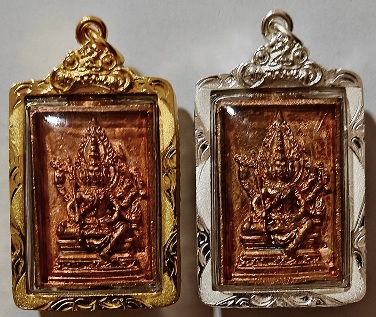 ยกชุด 2 องค์ พระพรหมหล่อรุ่นแรกหลวงพ่อรวย รุ่นสมความปราถนา วัดตะโก ปี 2557 แท้ ทัน หลวงพ่อรวย เลี่ยมกรอบทองไมครอนและเลี่ยมกรอบเงินไมครอน ตอกโค๊ด "รวย" |