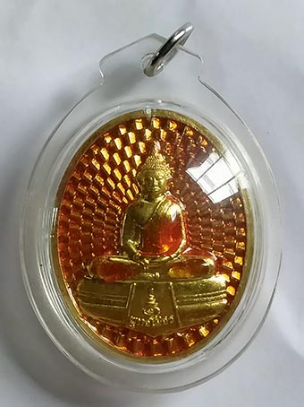 หลวงพ่อโสธร พิมพ์รูปไข่ วัดโสธรวราราม เนื้อทองระฆังลงยา เลี่ยมพร้อมบูชา ไม่มีกล่อง |