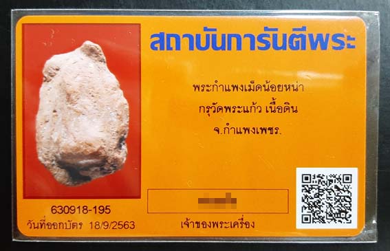 พระกำแพงเม็ดน้อยหน่า เนื้อดิน กรุวัดพระแก้ว จ.กำแพงเพชร พร้อมบัตรรับรองครับ |