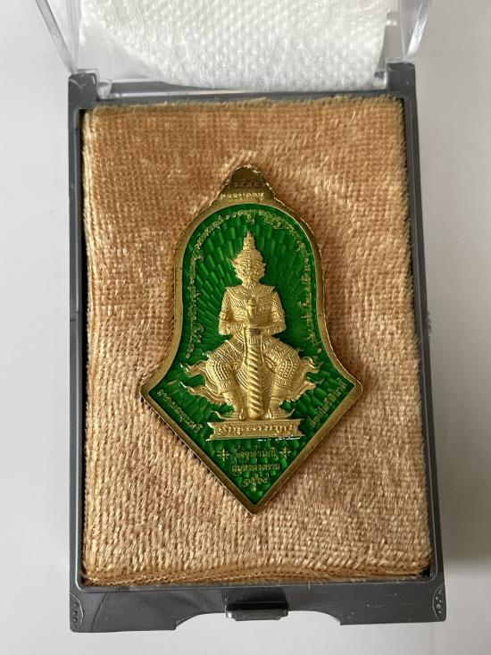 จำปีหลวงพ่อโสธร หลังท้าวเวสสุวรรณ รุ่นสยบไพรีพินาศ แยกชุดกรรมการ หลวงพ่ออิฎฐ์ วัดจุฬามณี เลขโค๊ต ๑๔๙๒ |
