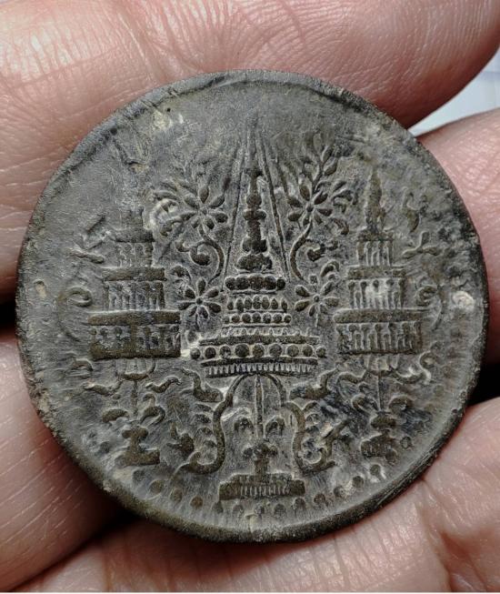 เคาะเดียวแดง เหรียญพระพุทธ เหรียญพระจุลมุงกุฏพระแสงจักรรัชกาลที่4 หลวงพ่อเนียมปลุกเศก เนื้อดีบุก พศ.2433-2452 |