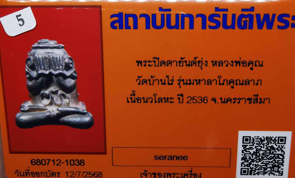 พระปิดตายันต์ยุ่ง หลวงพ่อคูณ วัดบ้านไร่ รุ่นมหาลาโภคูณลาภ เนื้อนวโลหะ ปี2536 จ.นครราชสีมา บัตรG-pra สภาพเดิมค่ะ สภาพตามรูปทุกประการค่ะ