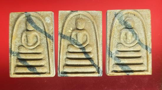 สมเด็จแพ 9 พัน เนื้อผงเกสรลาย ฝังตะกรุด หลวงพ่อแพ วัดพิกุลทอง สิงห์บุรี พร้อมกัน 3 องค์ <132>