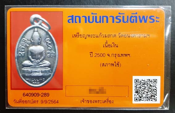 เหรียญพระแก้วมรกต วัดอนงคาราม เนื้อเงิน ปี2500 พร้อมบัตรรับรองครับ |