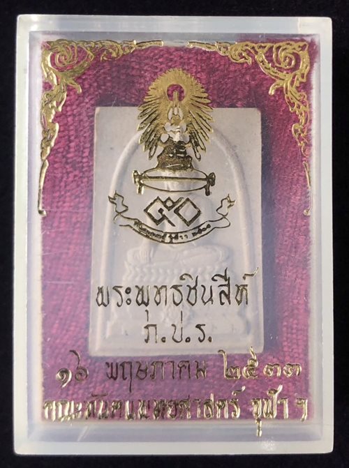 พระพุทธชินสีห์ ภปร. ทันโตเสฏโฐ พิมพ์ใหญ่ 50ปี คณะทันตแพทย์จุฬาฯ ปี 2533 (มีผงพระทนต์ในหลวง) มีพลอยด้านหลัง สภาพสวย มาพร้อมกล่องเดิมครับ