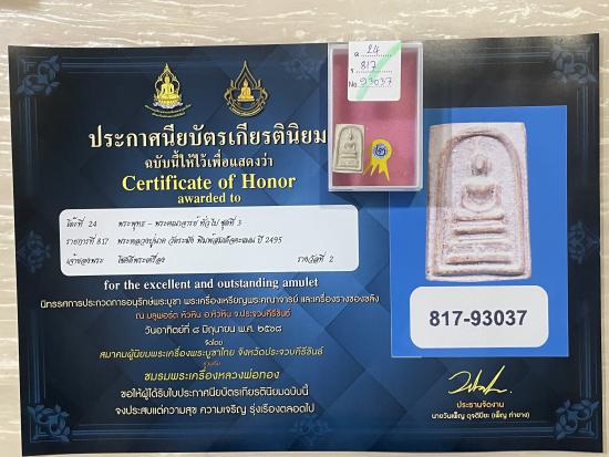 สร้างปี 2495 สภาพสวย สมบูรณ์ ไม่หักไม่ซ่อม รับประกันพระแท้ ดูง่าย ใบประกาศรางวัลที่2งานสมาคม