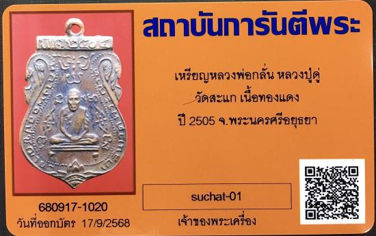 เหรียญหลวงพ่อกลั่น หลวงปู่ดู่ วัดสะแก เนื้อทองแดง ปี 2505 หลวงปู่ดู่ วัดสะแก จ.อยุธยา ปลุกเสก
