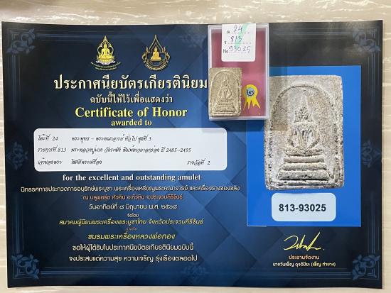 สร้างปี 2485 เนื้อจัดแบบสมเด็จวัดระฆัง สภาพสวย สมบูรณ์ ไม่หักไม่ซ่อม รับประกันพระแท้ ดูง่าย ใบประกาศรางวัลที่2งานสมาคม