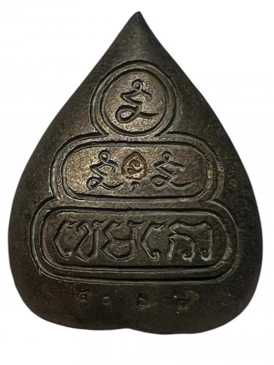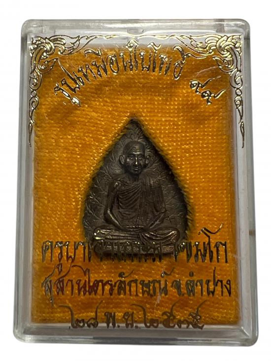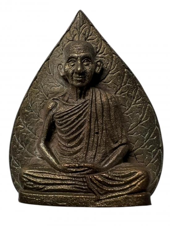 รูปเหมือนใบโพธิ์ หลวงพ่อเกษม เขมโก เนื้อนวโลหะ ปี2535 กล่องเดิม |